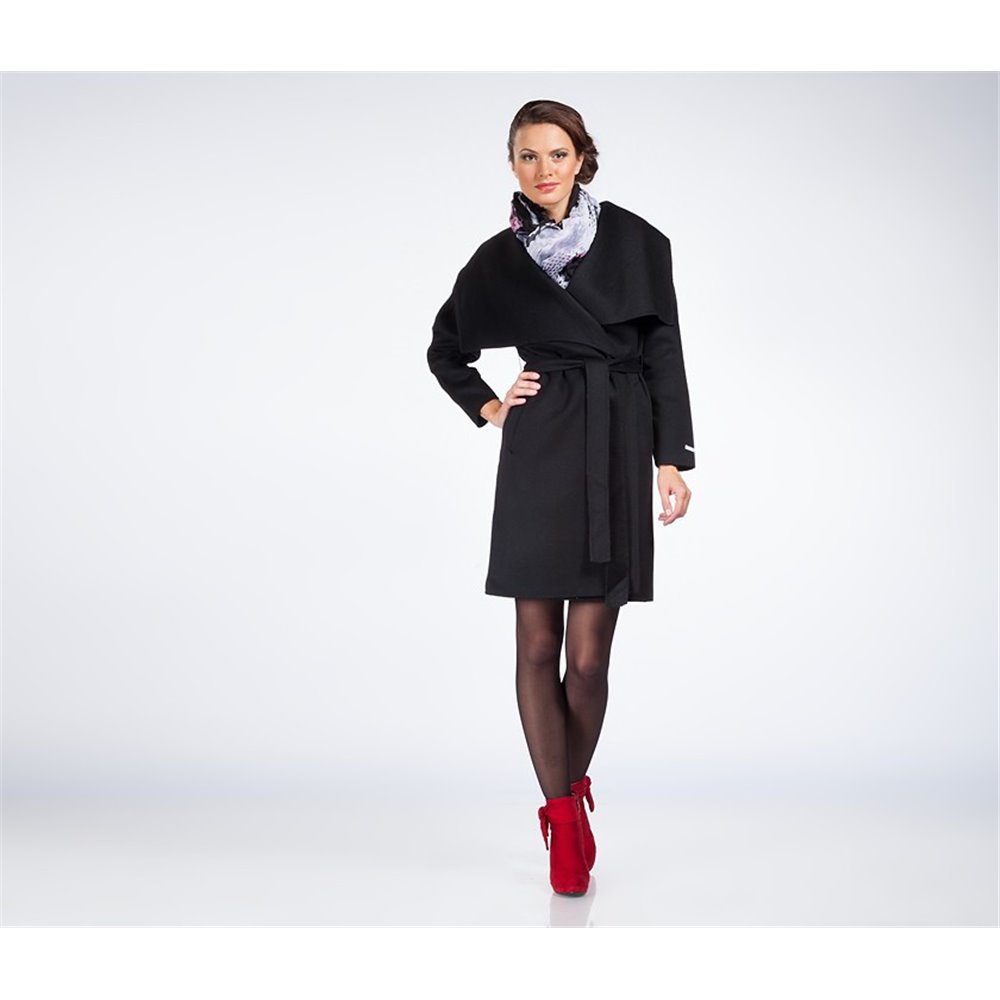 Легкое осеннее пальто без подкладки. Цельнокроенный рукав, объемный воротник. Пальто без застежки, завязывается на пояс. Длина по заднему шву 99+-2см.