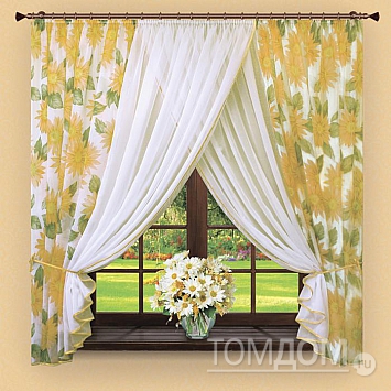 Тюль ( вуаль) 2 шт. Легкая, белая основа вуали оформлена цветочной отделкой желтого цвета. Комплект состоит из двух полотен, по верху сшитых между собой на шторной ленте. Общий размер: ширина: 350 см., высота: 160 см. Крепление: шторная лента (крючки). 2570 р. 2470 р.