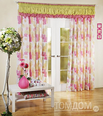 Ламбрекен 1 шт.: Ламбрекен изготовлен из легкой ткани на планке с двойным гребешком. Ширина: 200-250 см., высота-70 см., крепление-шторная лента (крючки). Портьеры 2 шт. Батистовые многоцветные портьеры оформлены цветочным рисунком. Размеры одного полотна: ширина: 190 см., высота: 270 см. Крепление: шторная лента (крючки). 4590 р. 4420 р.