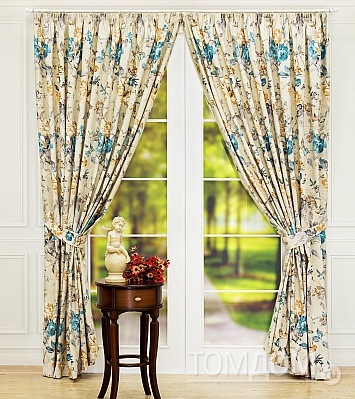 Портьеры 2 шт. и 2 подхвата. Плотная основа оформлена флористическим рисунком в стиле прованс. Размеры одного полотна: ширина: 240 см., высота: 270 см. Крепление: шторная лента (крючки). 7080 р. 6820 р.